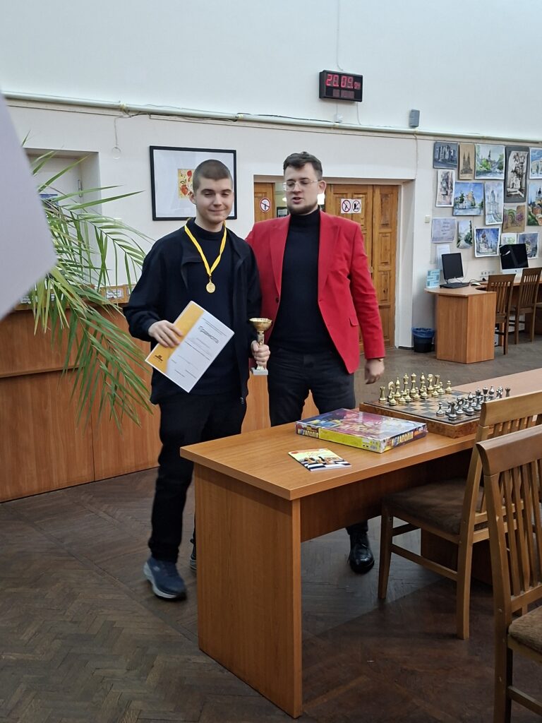 15 жовтня відбувся чемпіонат КНУБА з шахів серед студентів, аспірантів, викладачів та співробітників! Усього участь взяли 29 шахістів, які змагалися за швейцарською системою в 7 турів. У підсумку напруженої боротьби маємо наступні результати: