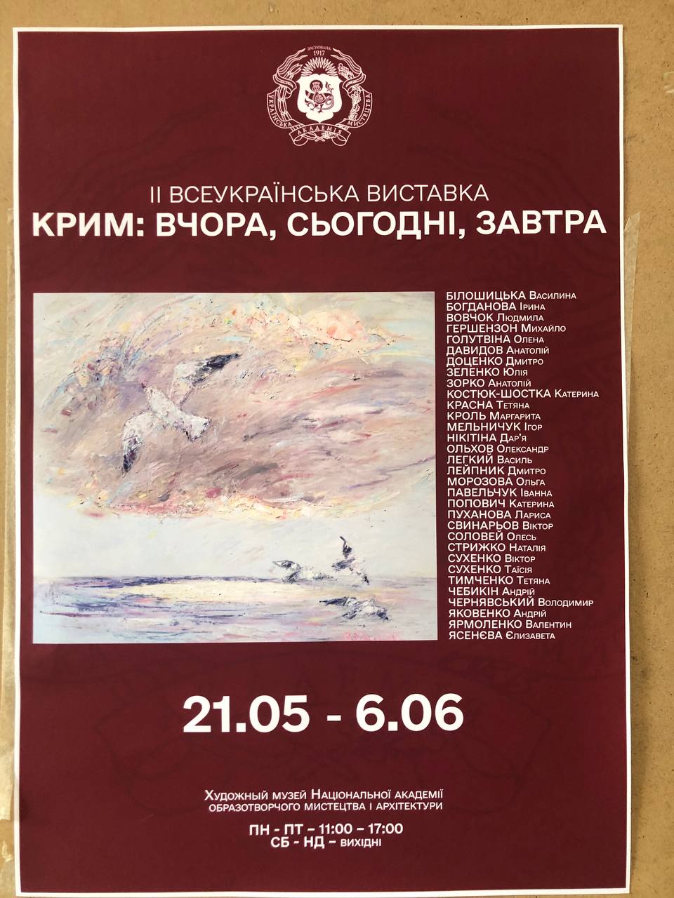 – участь у колективній ІІ Всеукраїнській виставці «Крим: вчора, сьогодні, завтра». 21.05 – 6.06.2025