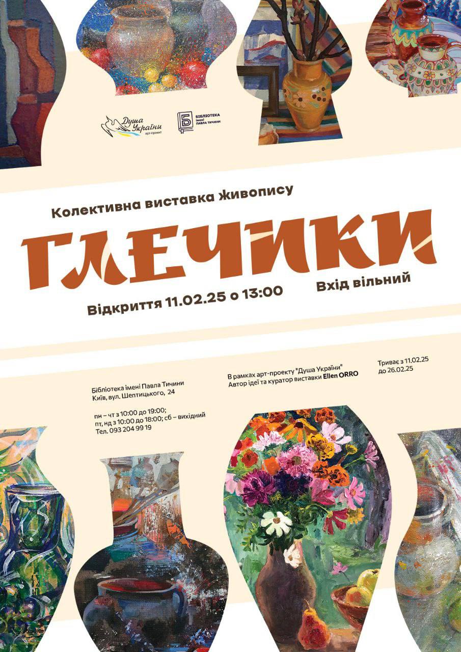 - участь у колективній виставці живопису «Глечики» у Бібліотеці імені Павла Тичини в рамках арт-проекту «Душа України», автор ідеї та куратор виставки Ellen Orro. 11.02 – 26.02.2025 р.