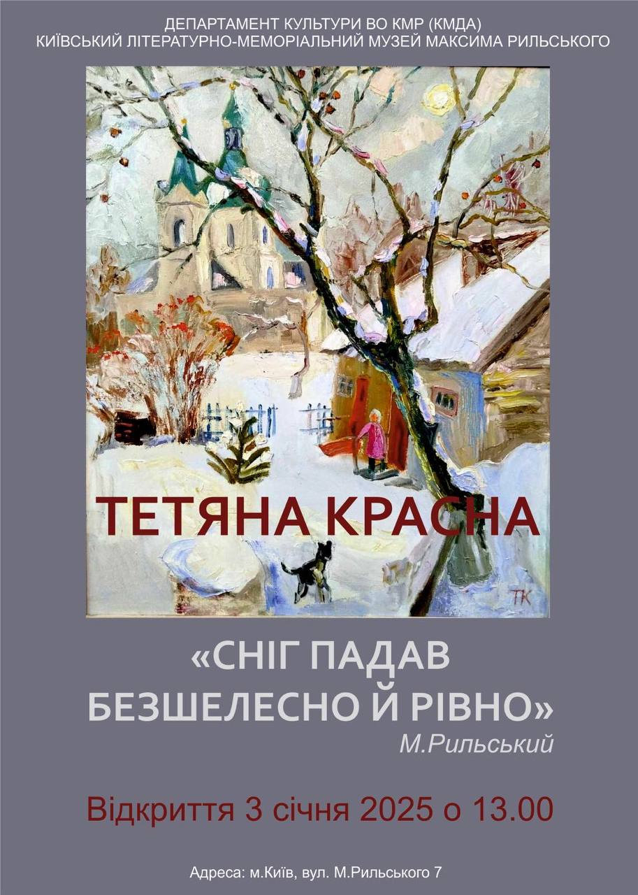 - персональна виставка у Київському літературно-меморіальному музеї Максима Рильського, січень – лютий 2025 р. Виставлено 15 робіт.