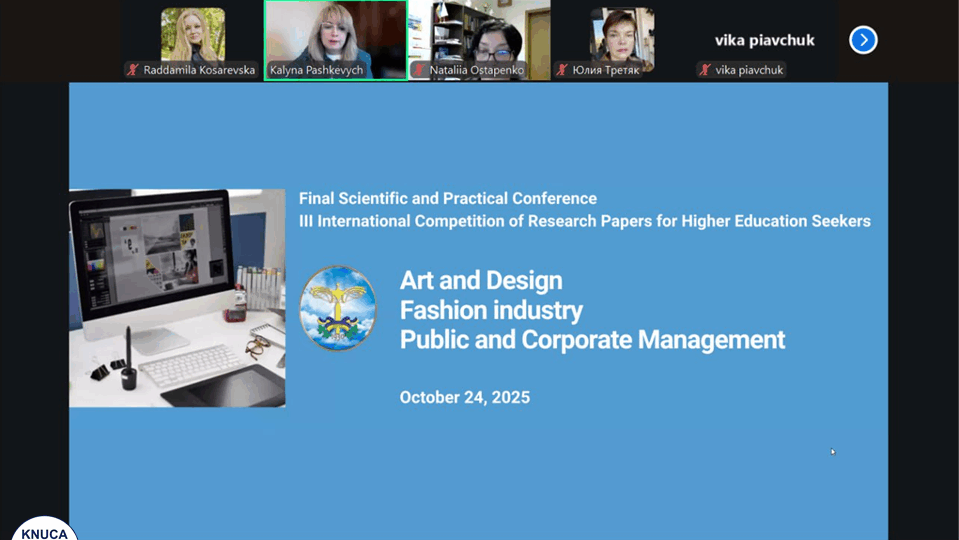 Студентка другого (магістерського) ступеня освіти за ОП «Середовищний і промисловий дизайн», спеціальність «Дизайн» Юлія ІГНАТЕНКО отримала Диплом II ступеня у III Міжнародному конкурсі наукових робіт здобувачів вищої освіти за напрямом «Art and Design», що відбувся на базі Київського національного університету технологій та дизайну 24 жовтня 2025 року. До участі у конкурсі було подано понад 90 наукових робіт, з яких лише 30 пройшли рецензування та були представлені здобувачами з 25 закладів вищої освіти, у тому числі закордонних.Робота Юлії ІГНАТЕНКО була високо оцінена конкурсною комісією за актуальність теми, аргументованість дослідження та якість дизайнерських рішень. Щиро вітаємо студентку та її наукового керівника — к.арх., доцента, доцента кафедри дизайну Косаревську Р.О. — із почесним здобутком! Досягнення є свідченням високого рівня підготовки, наукової цілеспрямованості та творчого потенціалу здобувачів нашого університету. Бажаємо подальших наукових успіхів, нових ідей і яскравих професійних перемог! Пишаємось!