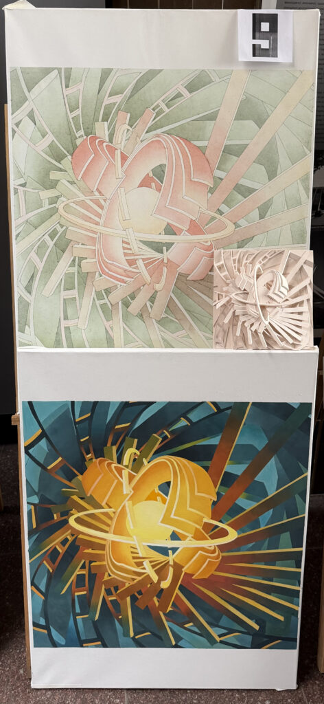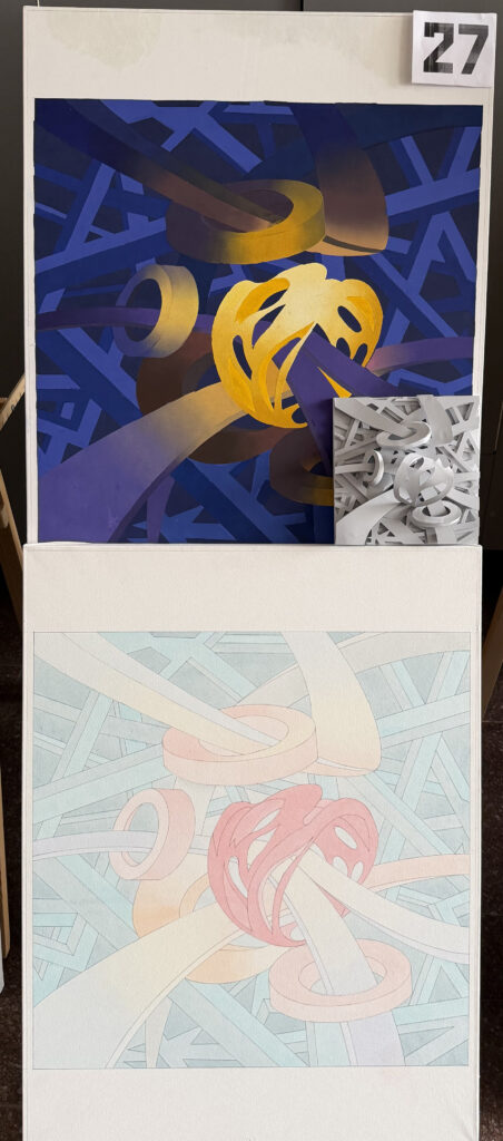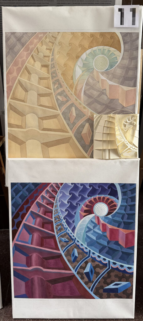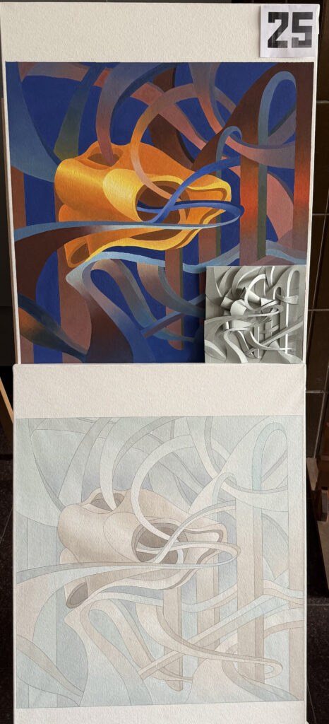 Курсовий проєкт «Абстрактна композиція» цікавий методикою пошукового мислення та творчого процесу для студентів.