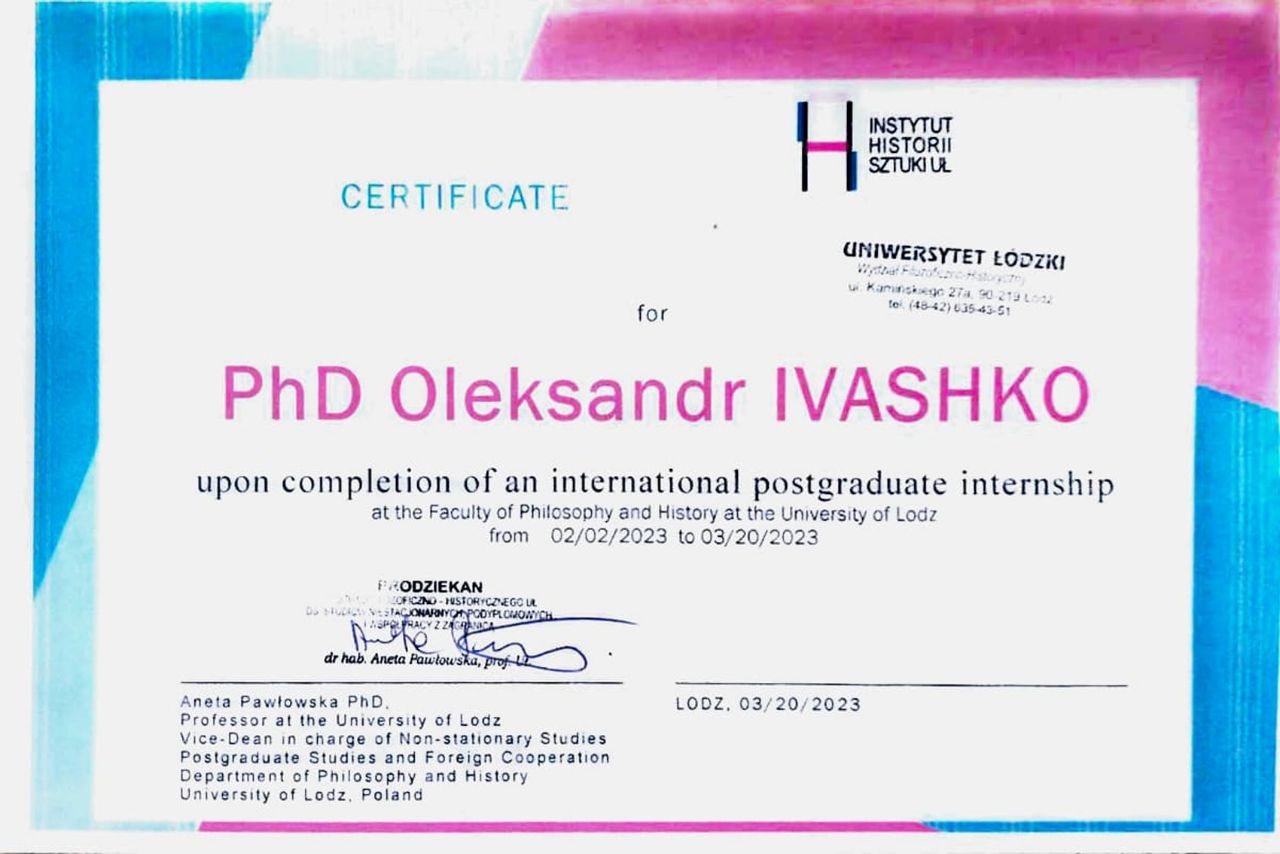 В 2019-2020 році пройшов 2 наукових стажування в університеті Politechnika Krakowska im. Tadeusza Kościuszki, м.Краків, Польща за темою “Ревіталізація промислових будівель під арт-кластери”.