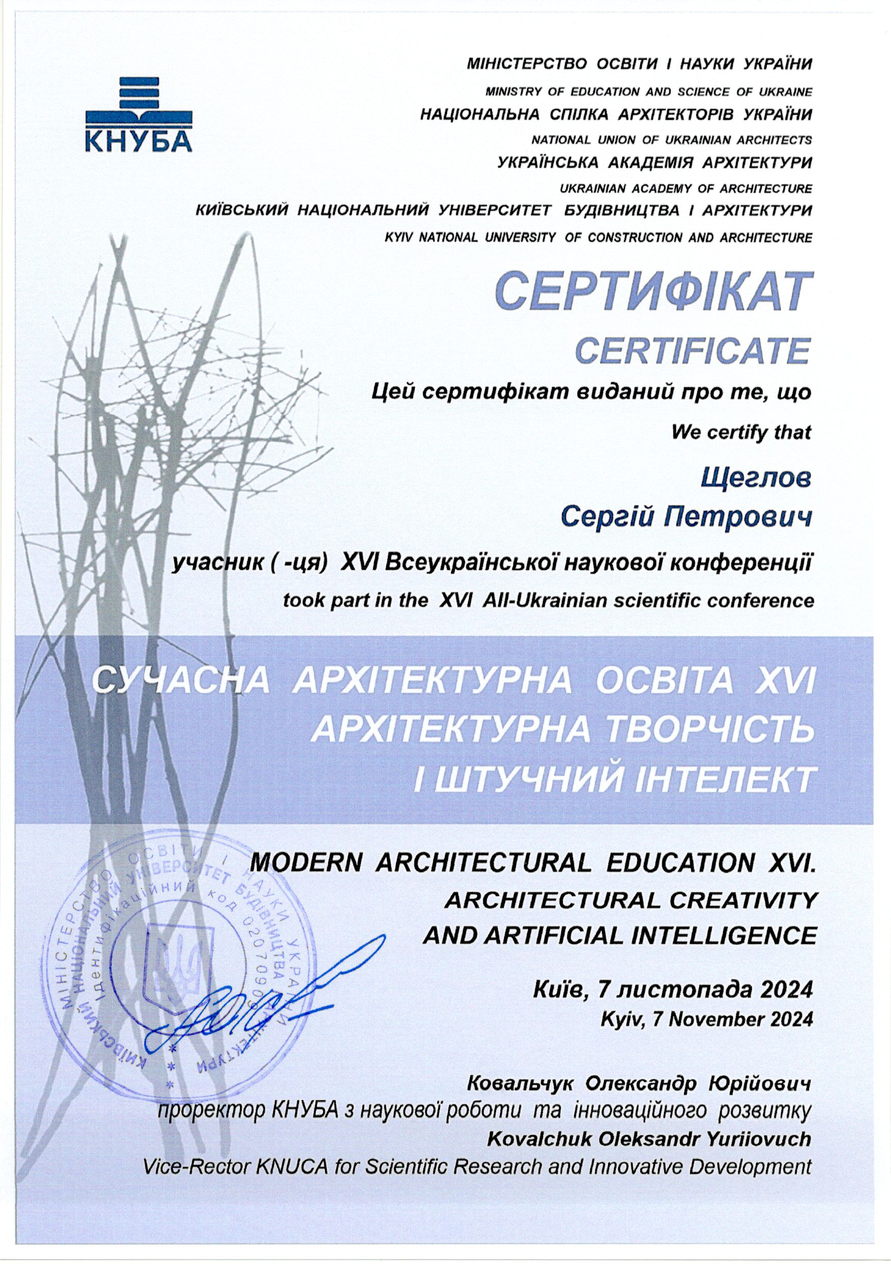 Ткаченко В.І., Щеглов С.П. Вплив штучного інтелекту на дизайн та навчання в сфері дизайну та архітектури. Програма доповідей XVІ Всеукраїнської наукової конференції «СУЧАСНА АРХІТЕКТУРНА ОСВІТА: АРХІТЕКТУРНА ТВОРЧІСТЬ І ШТУЧНИЙ ІНТЕЛЕКТ». (07 листопада 2024 року), Київ, 2025. С.143-145. URL: https://library.knuba.edu.ua/node/51